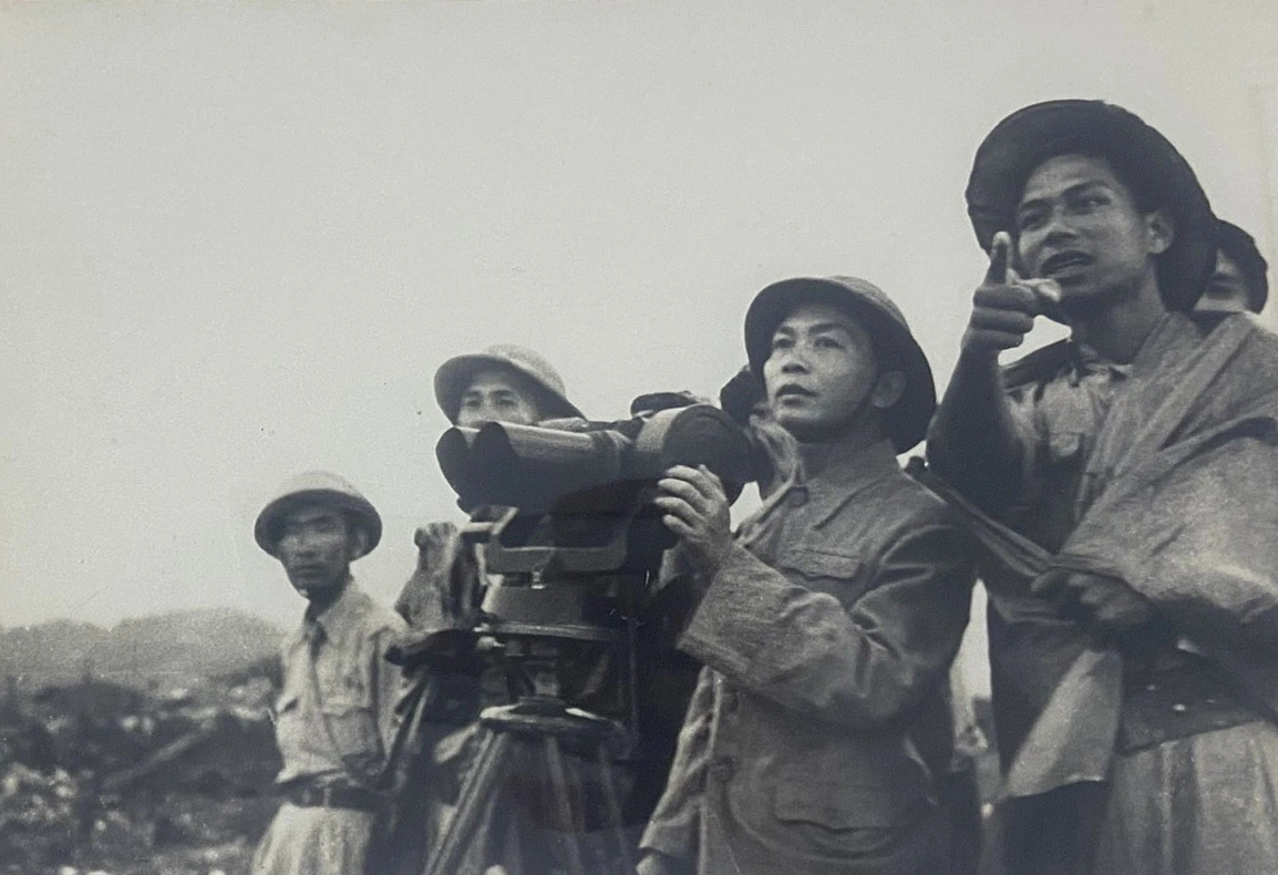 Đại tướng Võ Nguyên Giáp đang quan sát tình hình mặt trận năm 1954